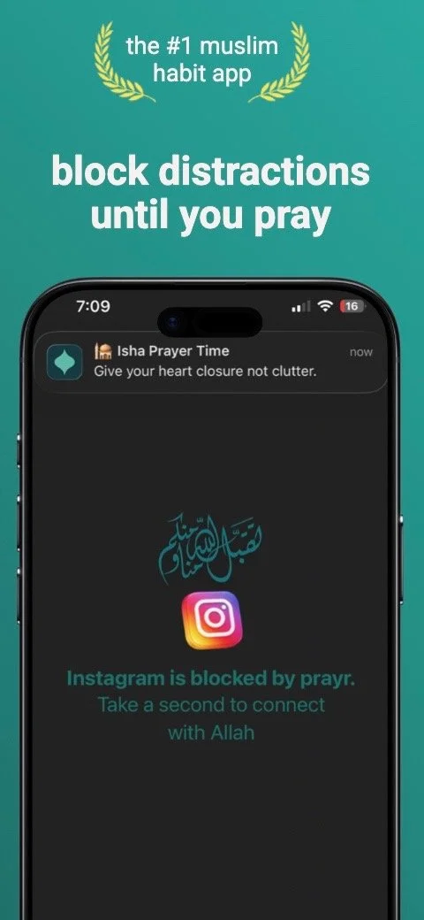 Prayr is a muslim focus prayer app that blocks distractions on your phone, like social media or games, until you pray. You get to select which apps to block and right when the adhan comes, your apps are locked to gently snap you out of doom scrolling and get you to focus on your Salah.